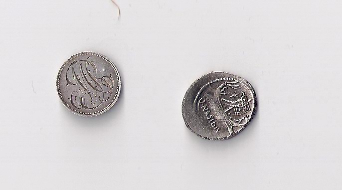 Iar cea din dreapta, denarul republican este un fals. Cel putin asa pare din poza.