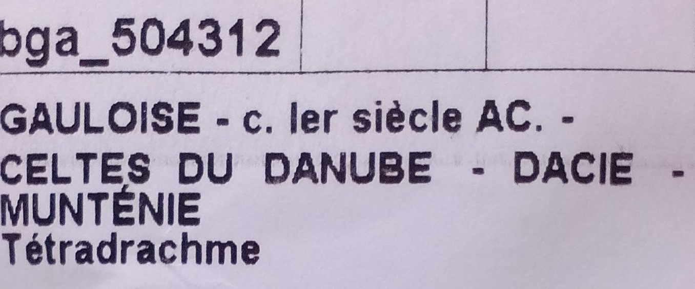 Am achiziţionat o monedă dintr-un magazin francez, considerată a fi "galică-celţii de pe Dunăre-Dacia-Muntenia". Am impresia că este dacică de tipul Aiud-Cugir.