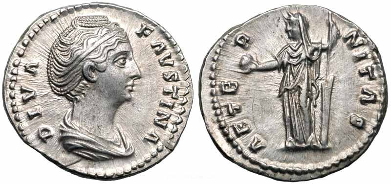 Este o imitatie barbara a denarului Faustinei si daca aversul a fos copiat destul de corect atunci legenda reversului e scrisa ocazional ceea ce e frecvent la imitatii ...