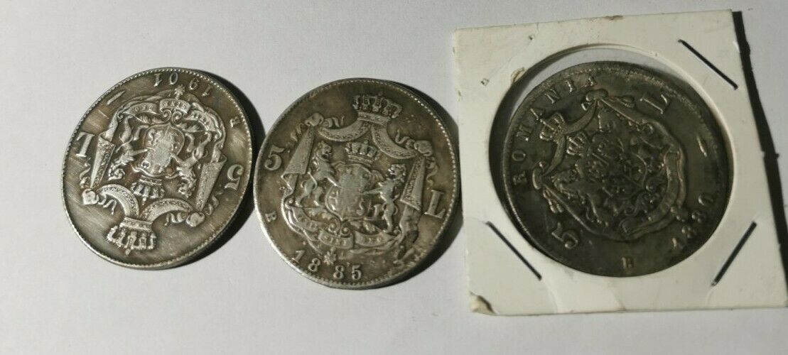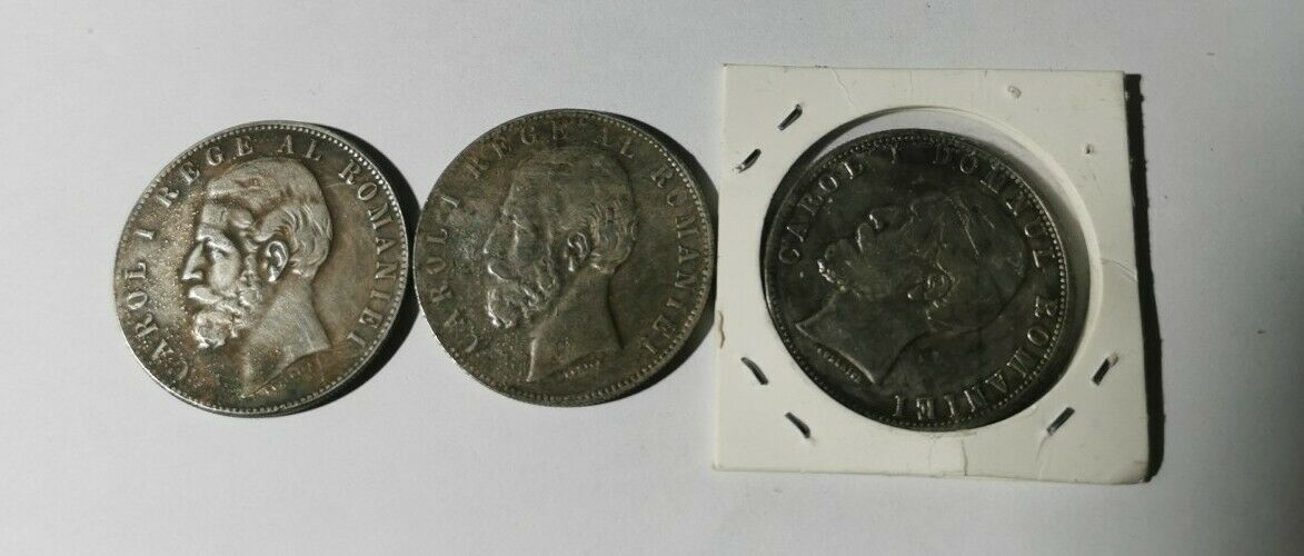 '' 3 x Romanian coins 5 Lei - CAROL I REGE AL ROMANIEI 1800, 1885, 1901