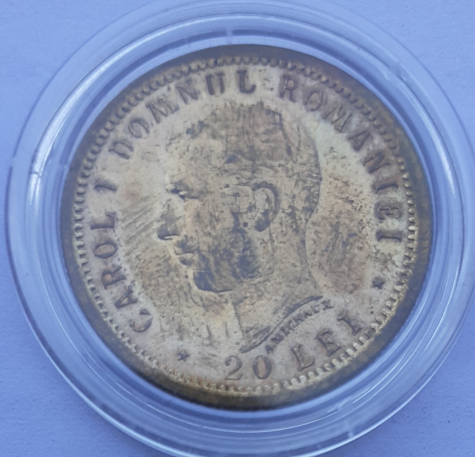 Prin 2006 am achiziţionat o monedă de 20 lei 1906, pe care am apreciat-o ca fiind o reproducere.