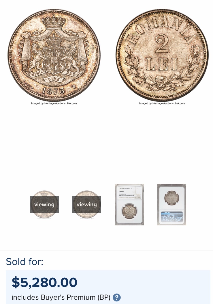 Nu am recunoscut-o. În pozele de pe HA arată mai bine, dar nu cred că se încadrează la 65. Este gradată în ultimele luni şi e posibil ca NGC să fi relaxat criteriile (covidul să fie de vină?). Am licitat şi eu pînă la 850 $, dar a ajuns deja la 1250+taxe şi mai sînt vreo 6 zile de licitație. Nu merită nici gradul, nici prețul la care a ajuns.