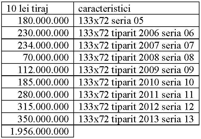 popoviciliza scrie:Este bancnota considerată la acel moment (2005-2007) ca fiind cea mai importantă în circulaţia propriu-zisă. Din acest motiv trebuia continuată tipărirea, dar preţul iniţial pentru vechea bancnotă (imprimare în relief) a fost considerat prea mare, aşa că s-a trecut la noua bancnotă (imprimare plană), aşa că s-a ajuns la ceea ce vedeţi.
