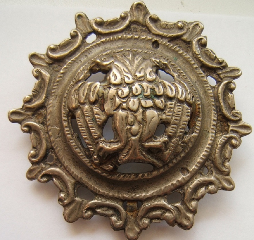 Solicit ajutorul dvs legat de respectiva piesa, probabil un ornament pentru pafta sau ceva de genul acesta. Este din argint si are 15,5 grame. M-am gandit la o tinuta militara ruseasca, vad ca este prezentat un vultur bicefal.