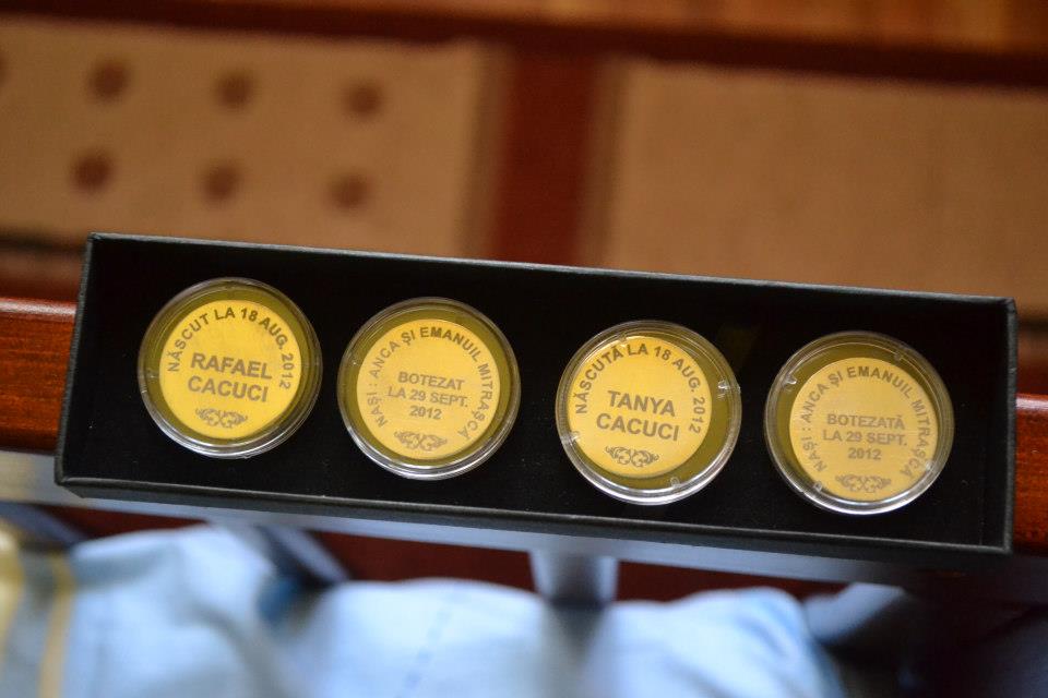 Cacuci scrie:Eu am facut niste medalii marturii de botez (din monede de argint slefuite) , prin gravare laser la firma Mariomatic din Oradea.