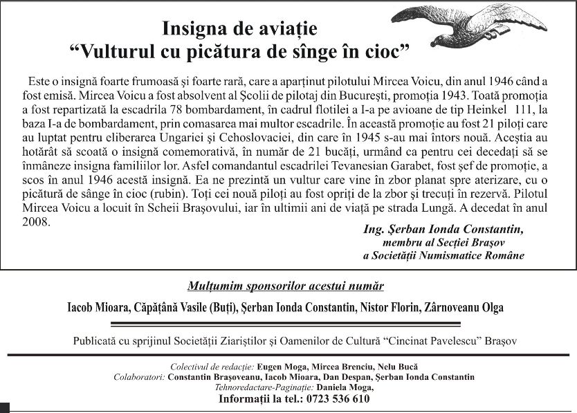 Inainte sa intreb pe Forum de pasare, primisem o informatie, cum ca ar exista o " insigna " a unui pilot din Brasov si ca piesa ajunsese intr-o colectie, tot Brasov.