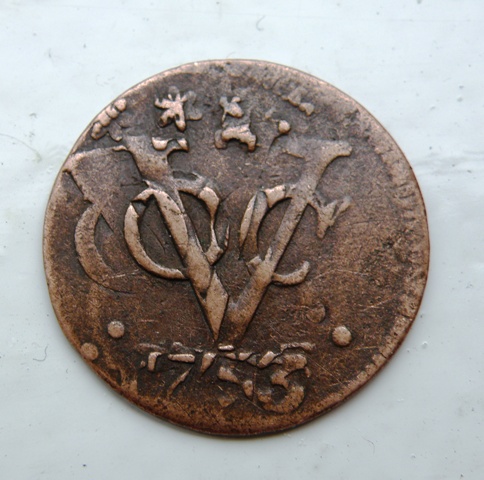 Interesanta chestie. La prima vedere pare o banala batere dubla - si milesimul 1753 e dublat. Insa nu mi se pare ca daca asezam cele doua inscriptii VOC una peste alta se suprapune si milesimul...