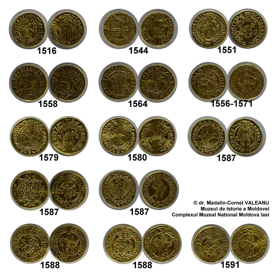 "Potrivit arheologului Mădălin Văleanu, de la Complexul Muzeal „Moldova“, monedele au fost bătute între anii 1516 şi 1591 în ateliere din Austria, Prusia, Olanda, Ungaria şi Transilvania şi au o greutate de 50 de grame de aur."