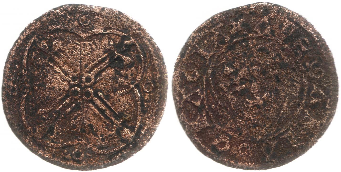 E probabil un jeton feudal francez ar trebui sa aiba un diametru de 15 mm si o greutate sub 1 gram sa fie un denier. Problema ca in starea actuala de conservare nu prea se spune prea mult despre el.