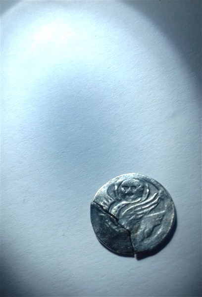 Am ajuns acasa si am reusit sa cantaresc moneda.Este din argint,diametrul de 12 mm si o greutate de 0,57 de grame.Pe net am cautat ore intregi si nu am reusit sa gasesc vreo asemanare.Daca vreun coleg ma poate ajuta ii multumesc.