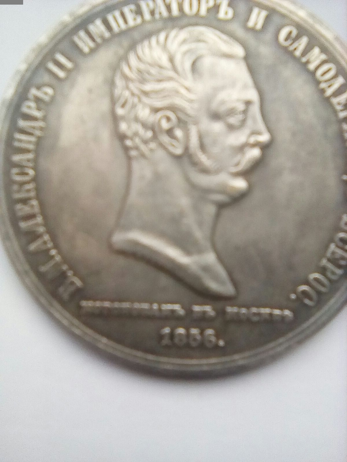 Este vorba despre o medalie de argint emisă la încoronarea țarului Alexandru al II-lea.