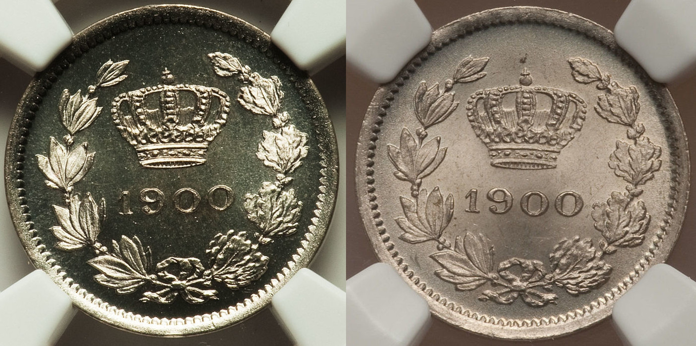 Cautand pe net 10 bani 1900 aveam senzatia ca am mai vazut-o si mi-am amintit de moneda mea veche - prea semana fontul asa ca am cautat-o nestiind daca mai exista pe undeva, am gasit-o ratacita intr-un clasor de monede straine duminica. am curatat-o - stiu foarte bine ca monedele nu se curata, dar starea era mult sub orice standard (si eu am standarde joase, F sau VF sunt bune pentru colectia mea, asta era doar o rondea coclita).