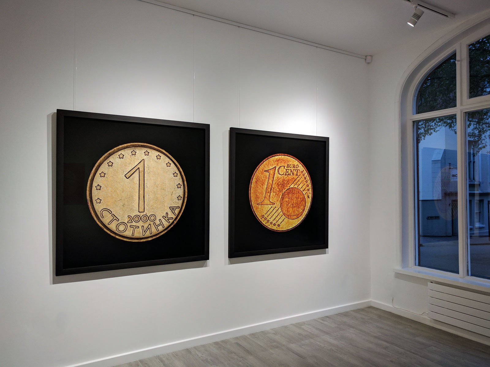 "The economic system, which has raised to such notorious prominence in recent years because of its obvious impact on our lives, is a complex structure whose functioning is increasingly necessary to understand and, as much as possible, to predict or even control. In this sense, and in response to the dominance of macroeconomics in the discourse of the media, the artist chooses a microscopic view of the world economy. The Fundamental Units is an exploration of the lowest denomination coins from the world’s currencies using an infinite focus 3D optical microscope at the National Physical Laboratory in Teddington (UK). The images obtained with the microscope have been combined to form an extremely detailed large scale reproduction of the least valuable coins from Australia, Chile, the Euro, Myanmar and the Kingdom of Swaziland. In these images the humble metal acquires a planetary dimension and is displayed as the atoms that shape the global economy". — Pau Waelder, Curator