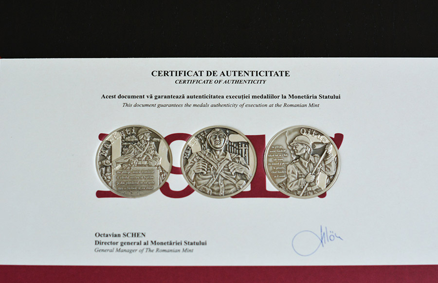 Acest produs, format din album tip carte și un set compus din trei medalii, are caracteristici formale superioare faţă de produsele comandate de către BNR („100 de ani de la victoriile armatei române de la Mărăști, Mărășești și Oituz” - monedă pentru colecționare şi „100 de ani de la victoriile armatei române de la Mărăști, Mărășești și Oituz” - set de trei monede), emise concomitent. Astfel, pe lângă deja inconturnabilul Mausoleu de la Mărăşeşti, se regăsesc aici imagini în acţiune ale celor care au adus victoriile Armatei Române pe câmpurile de luptă din vara lui 1917.