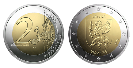 În perioada 2016-2018, Banca Letoniei (bancă centrală, Letonia a adoptat euro) emite o serie 4 monede comemorative de 2 euro, câte una dedicată fiecăreia dintre regiunile istorice ale acestei ţări şi anume (în ordinea emiterii monedelor): Vidzeme, Kurzeme, Zemgale şi Latgale