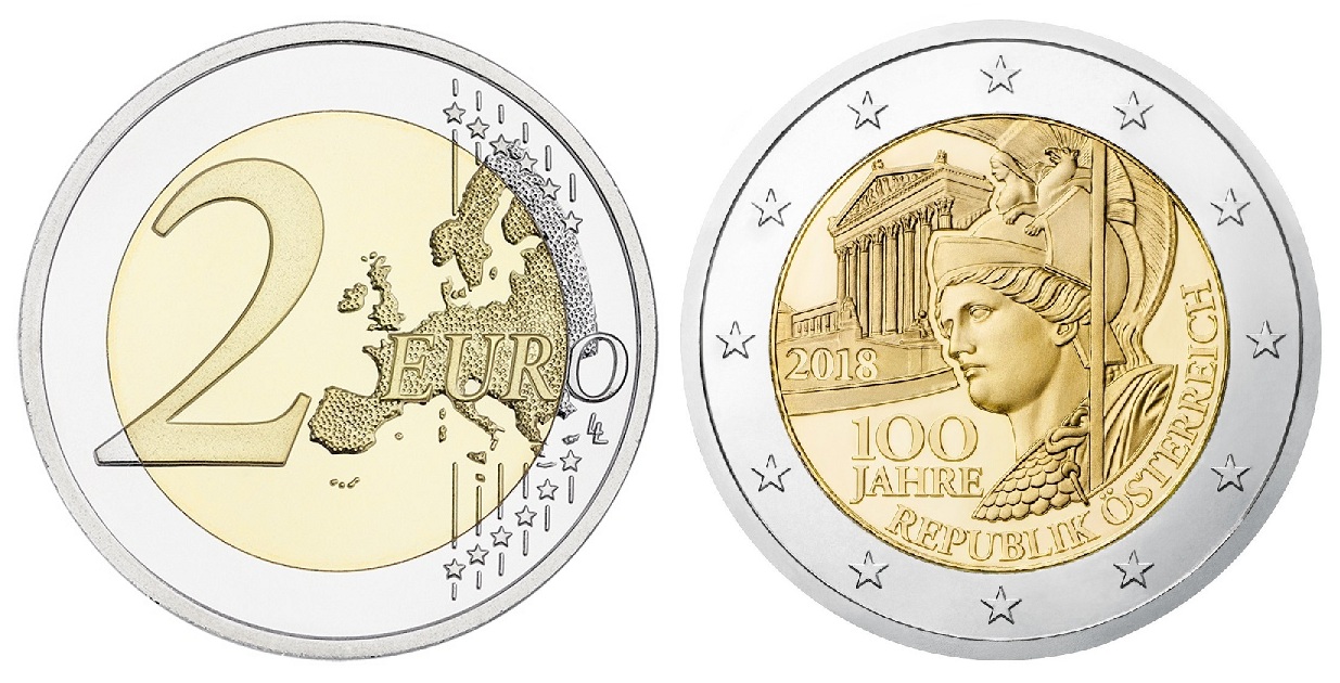 Pe 24 ianuarie 2018 se lansează setul de monede de 1 cent, 2, 5, 10, 20 și 50 cenți, 1 euro și 2 euro 2018 legat de Centenarul Republicii Austria.
