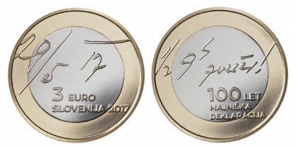 Banca Sloveniei a emis mai multe monede cu caracter numismatic pentru a marca 100 de ani de la semnarea Declaraţiei din Mai 1917.