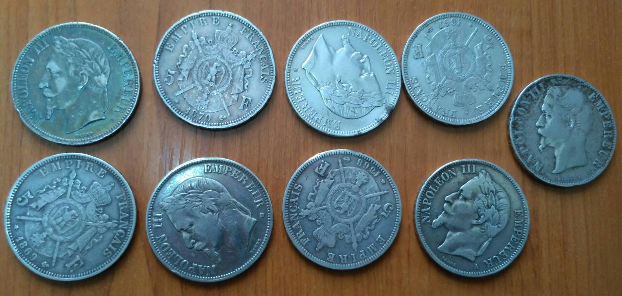 În primul caz, obiectul documentării îl constituie nouă monede, care datează din perioada anilor 1855-1870, toate cu nominalul de 5 F și inscripția ”Napoleon III Empereur”. Bunurile, expediate din Franța în adresa unui locuitor al mun. Chișinău, erau indicate în actele de însoțire drept discuri metalice.