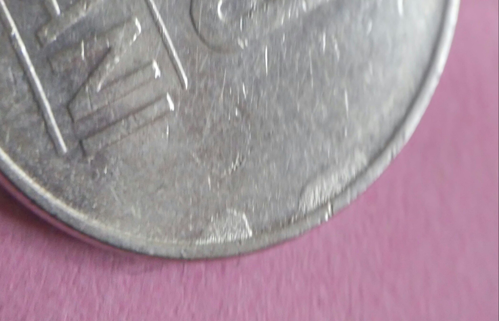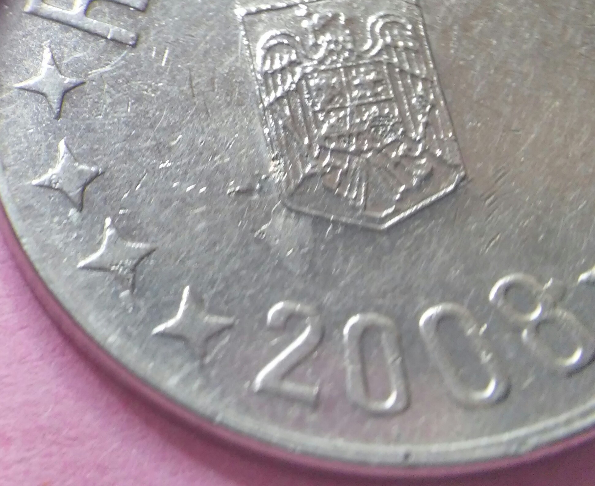 Cine caută găsește.Am ceva timp de când urmăresc monedele de după 2005 pentru erori sau defecte de batere.Păcat că e "obosită",în aUNC arăta mai bine.Zic aUNC că nici măcar în fâșic nu sunt UNC.