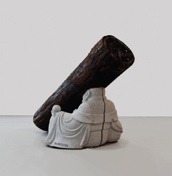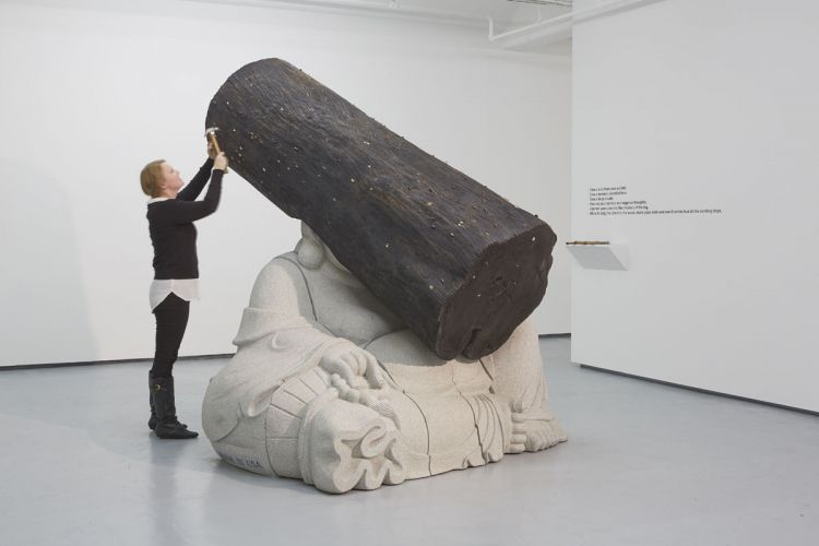 Ce mi s-a părut "de mare efect": în funcţie de continentul pe care se expune opera de artă, eticheta de la baza statuii se schimbă...