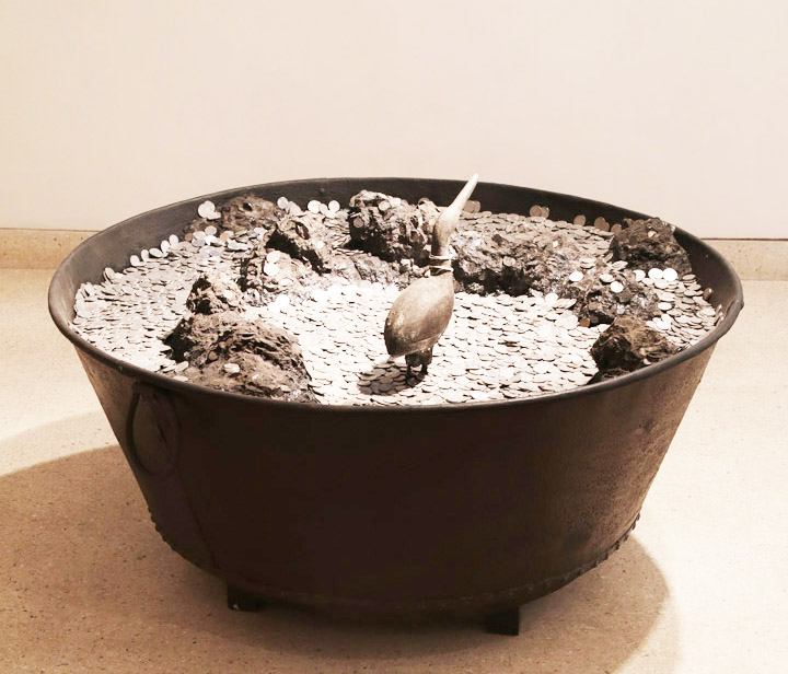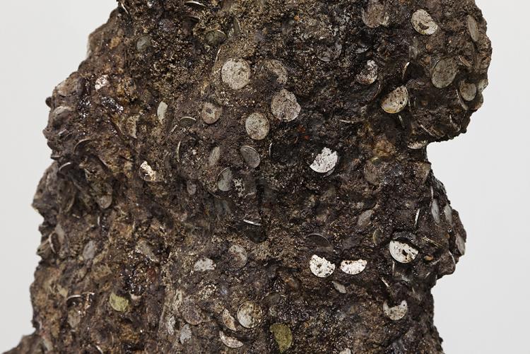 lemn / rumeguş / vopsea auto / monede / umbră pictată