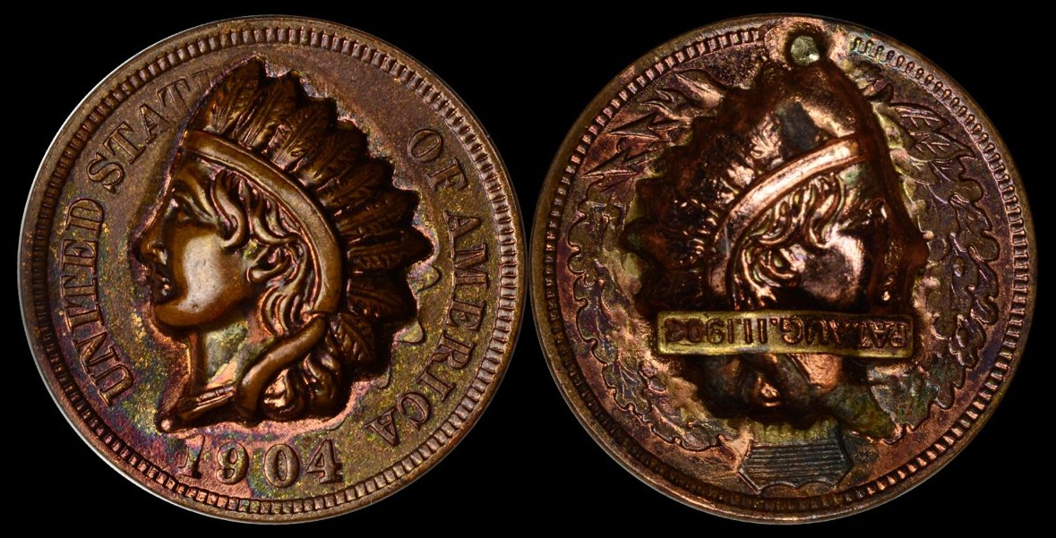 La începutul secolului trecut au fost scoase patente legate de acest tip de prelucrare de către George Keppler (1903), respectiv William Malliet (1904). Pentru moment, se pare că singura carte care le abordează este cea scrisă de către Robert J. Stump (incluzând vânzări şi preţuri obţinute http://www.coinbooks.org/esylum_v14n45a03.html). Piesele cu cea mai mare valoare sunt cele care au poartă bara cu patentul (ceea ce este şi semnul autenticităţii). Multe astfel de piese sunt de la sfârşitul secolului XIX, începutul secolului XX.