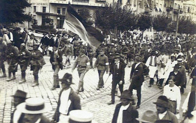 Nu mai insist pe tema cu stema desuetă, că mai este mult până în 2019. Dar continuă să persiste imaginea retușată color a steagurilor tricolore purtate în 1918 la Marea Adunare Națională de la Alba Iulia.