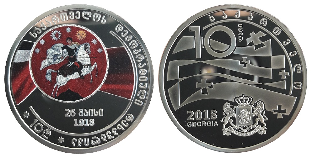 Banca Naţională a Georgiei a emis o monedă aniversară dedicată centenarului creării primei republici democratice a Georgiei (26 mai, 1918).