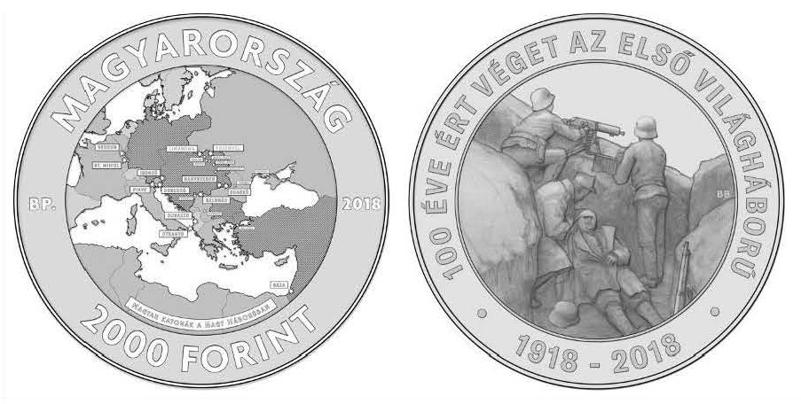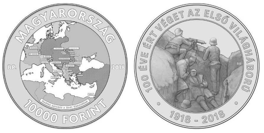 Banca Centrală a Ungariei (Magyar Nemezeti Bank) anunţă o emisiune detinată colecţionarilor cu titlul „100th Anniversary of the End of World War I”.