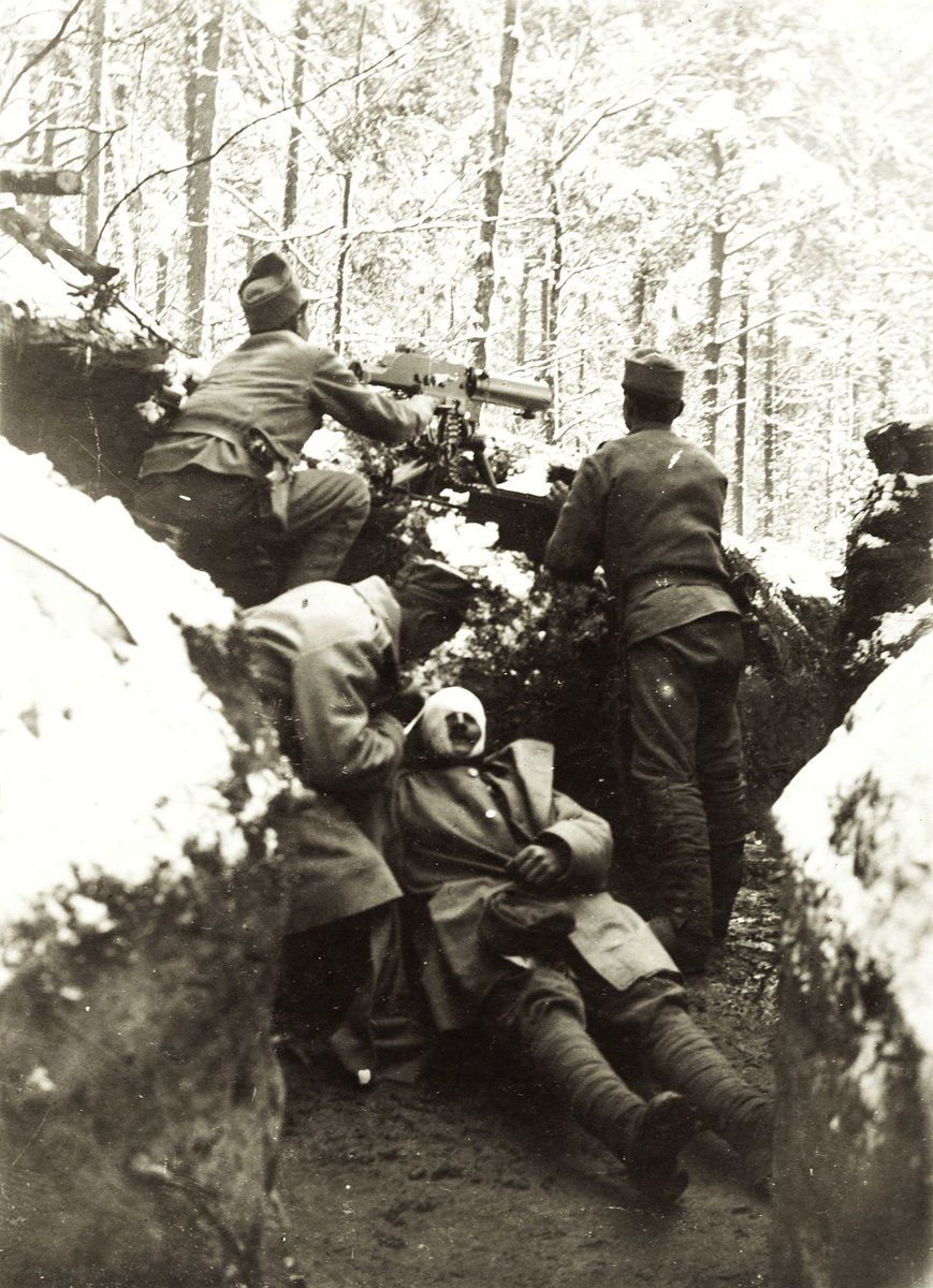 Deși uniformele și mitraliera la care faceți trimitere s-au găsit la finalul WW1 în dotarea armatelor Puterilor Centrale (a doua fotografie de mai jos), în mod miraculos, în cazul acestei imagini AVEȚI DREPTATE!