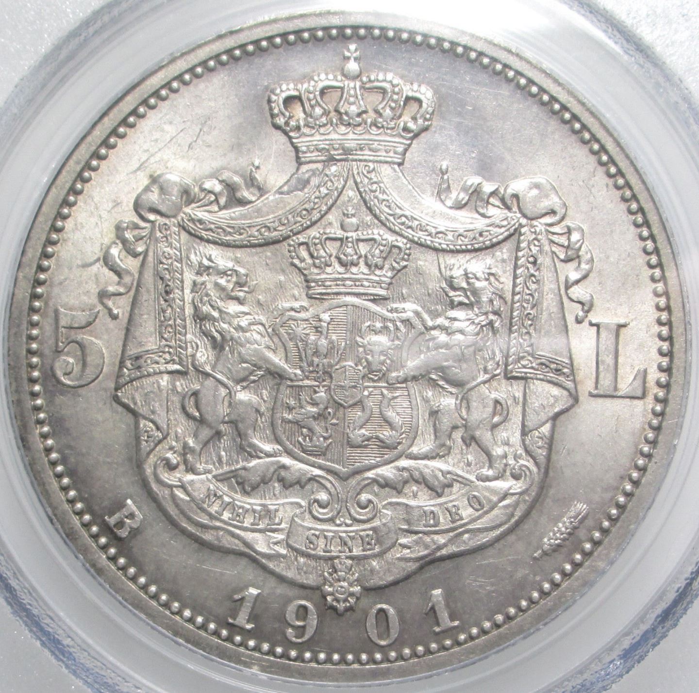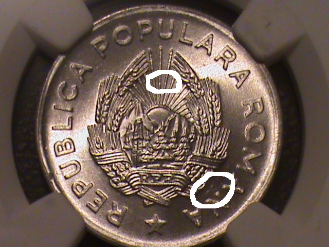 La raze e un efect de la lumina,nu sunt contacte acolo.Langa N exista ceva urme vizibile cu greu doar din unghiul bun.O urma este in relief,la fel ca cea de langa "U".Urme superficiale, unele din batere. Daca 5 lei 1950 era de MS64 si comparam monedele diferenta este foarte mare.Daca nu 2 grade cum spun eu cu siguranta este un grad macar si e suficient sa comparam muntii.In ce priveste gradele NGC daca acceptam ca MS62 e mai bun ca 61,63 ca 62,......,68 ca 67 si ca dau 68 e oarecum de asteptat sa avem MS62 la o moneda care are cale buna pana la UNC.Pentru a avea un AU50 bun ar trebui sa dea MS64 foarte greu si nu este asa.Cum MS64 se da cu lejeritate se ajunge la un AU50 foarte slab.