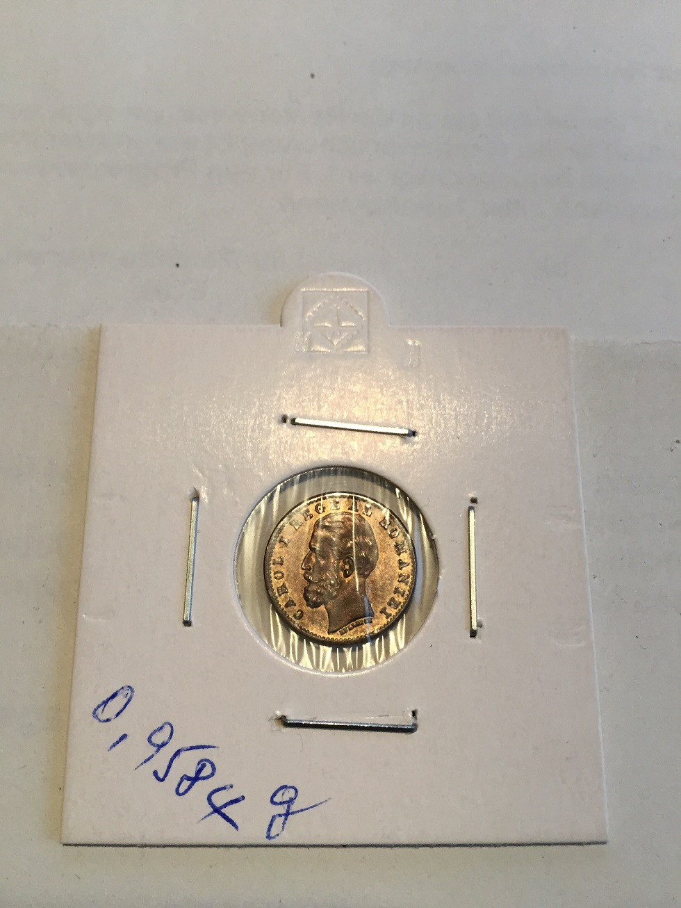Moneda are exact 0,9584 g si atasez o poza , ca sa fie si oficial.