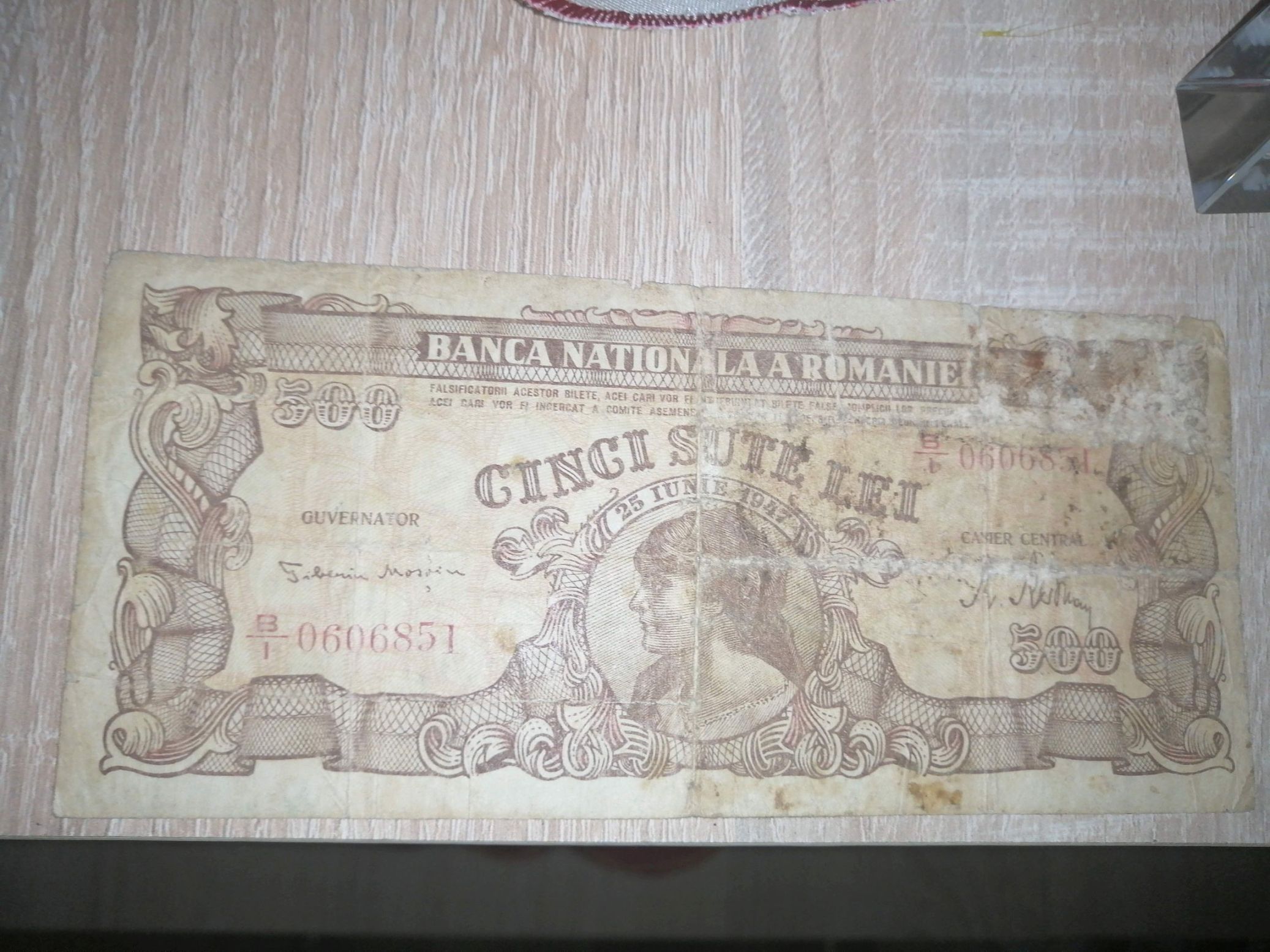 Am intrat in posesia unei bancnote de 500 lei 1947, in stare groaznica.