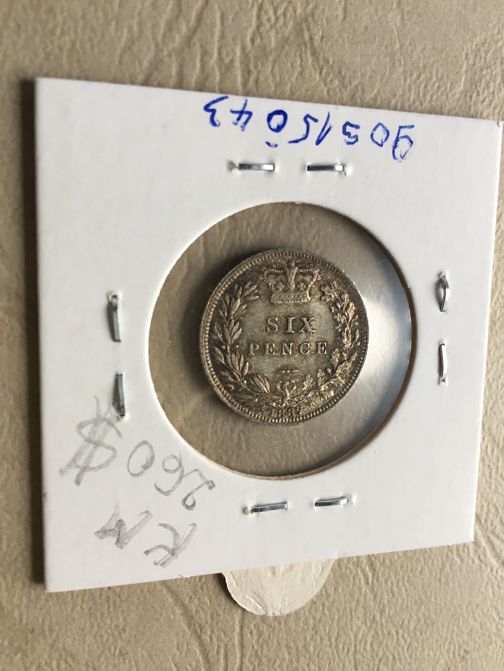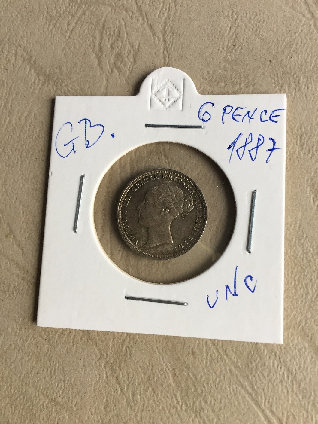 GB, 6 Pence 1887, UNC, patina, 92 EUR.