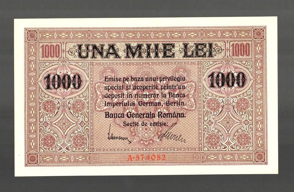 1000 lei 1917 BGR Banca Generala Romana UNC