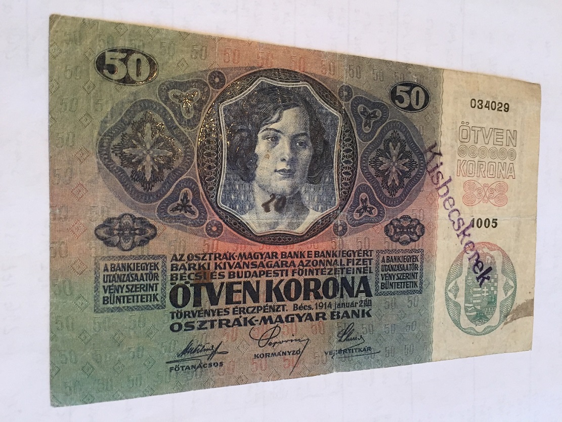 50 Kronen 1914, VF-, stampila de Kisbecskerek ( Becicherecu Mic / Romania ), EUR 25,00 cu recomandata inclusa.