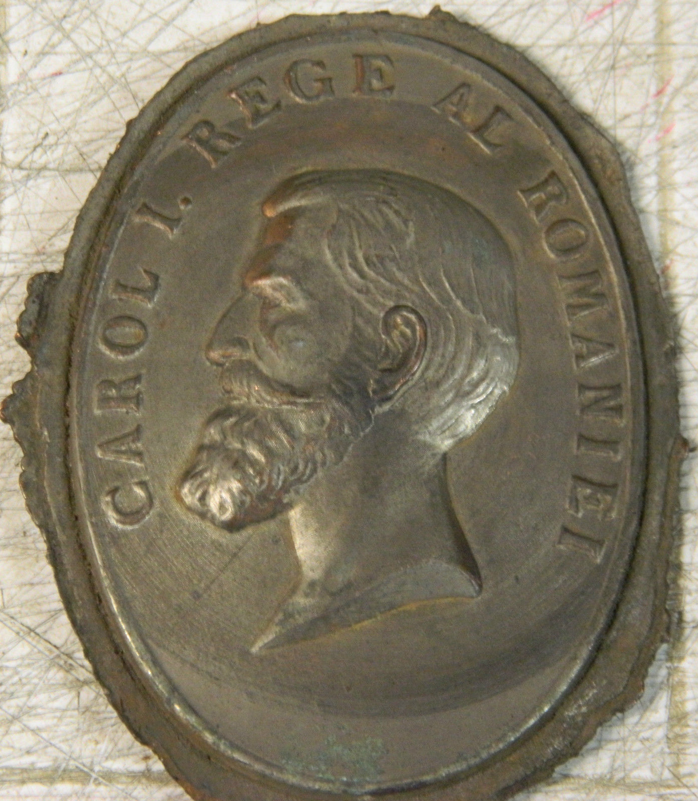 recent am intrat in posesia medaliei alaturate. Pare a fi o efigie mai aparte, mai veche a lui Carol diferita de cele des intalnite pe internet. Pe revers are doua linii in relief , intersectate in forma de cruce prin litera Ș de la "ȘI", datorate matritei crapate .