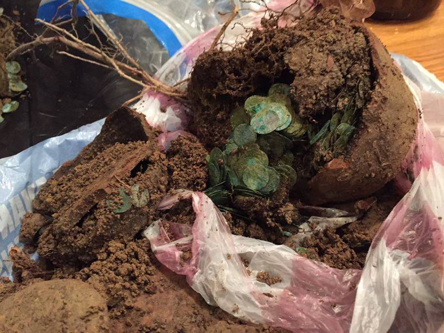 ''Când a ajuns şi a văzut ce era în groapă, nu-şi mai găsea cuvintele. Nici eu nu mai eram stăpan pe ale mele. Începem să recuperăm tezaurul, băgam metodic în rucsac bucătică cu bucătica, cu tot cu fragmentele de ceramică şi ceva pământ în care erau concentrate multe monede, ne şi gândeam ce frumos vor arăta într-o vitrină de muzeu. Când am zis noi că suntem gata, am mai verificat o dată pământul de lângă groapă cu detectorul, să nu fi rămas vreo monedă. Din nou semnal clar de lucruri faine! Lărgim un pic groapa şi, hop, încă o ulcică, tot fragmentata. Aceeaşi puzderie de monede. Începem să punem, cu tot cu pământ şi ceramică, şi în al doilea rucsac (cred că am cărat acasă câteva kg bune de pământ). Gata, să mergem! Ultima verificare şi biiiip, acelaşi semnal. Râcâi cu mâna pereţii din fundul gropii şi simt ceva tăios în degete. Fragment de ceramică. Şiii… a treia ulcicaaa!!! Şi vreo 2-3 pietre plate care, cert, avuseseră rol de capac. Am început cu un pic înainte de apus şi am terminat aproape pe întuneric. Deci 3 ulcele în aceeaşi groapă!'', a povestit Daniel Matei, unul dintre tinerii care l-au găsit, pe pagina de Facebook Detech România.