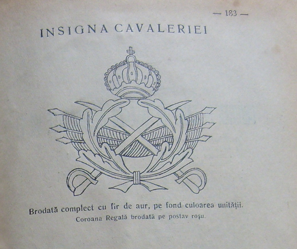 Am revenit cum am promis. Aveti in prima fotografie doua paftale, una de cavalerie, una de aviatie, din colectia proprie. In a doua imagine, aveti descrierea insemnelor cavaleriei, fotocopie din Regulamentul uniformelor armatei romane din 1934.
