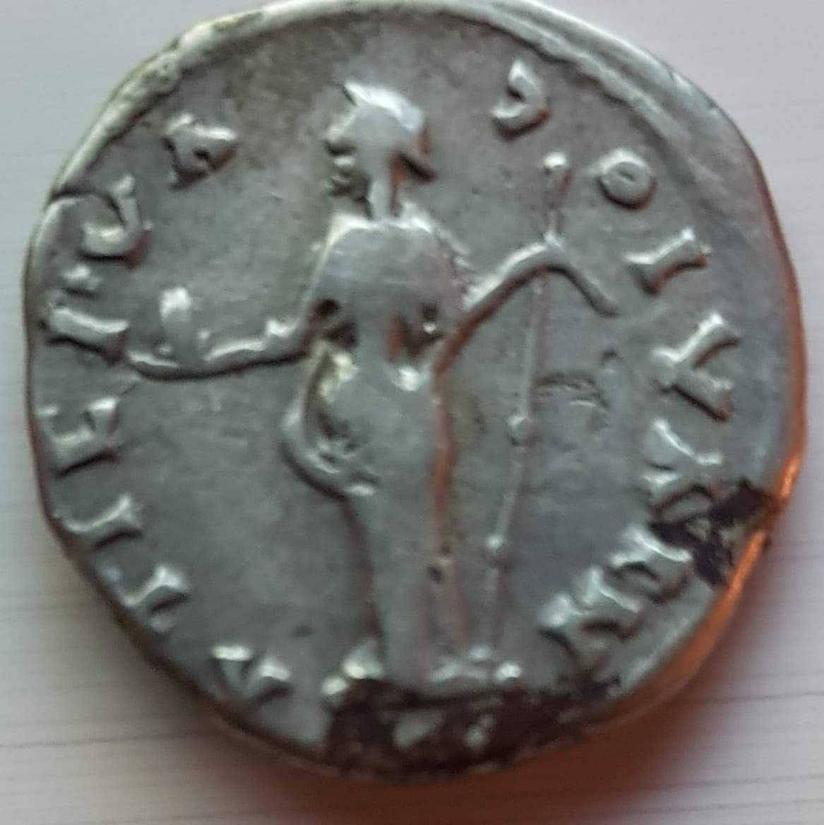 Este o imitatie barbara a denarului Faustinei si daca aversul a fos copiat destul de corect atunci legenda reversului e scrisa ocazional ceea ce e frecvent la imitatii ...