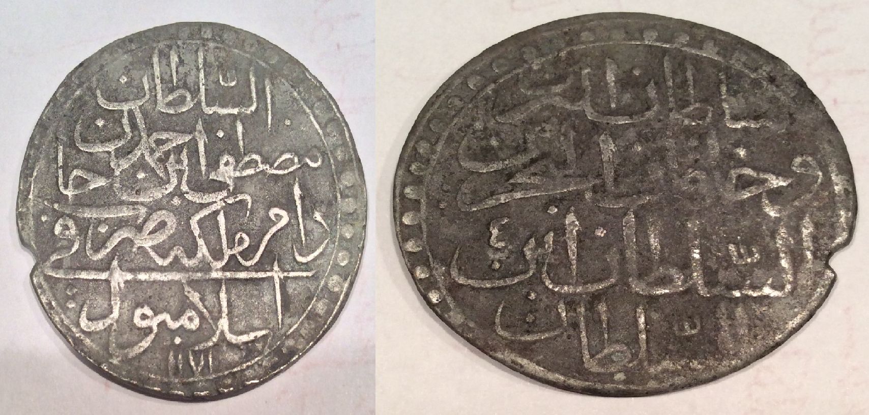 Am cumpărat zilele trecute trei monede otomane. Recunosc, am hotărât de curând să-mi alcătuiesc o colecție de monede otomane, perioada 1600 - 1800 dHs (1000 - 1200 AH), și nu sunt familiarizat cu ele. Dar am acționat emoțional (adică n-am citit despre ele înainte...).