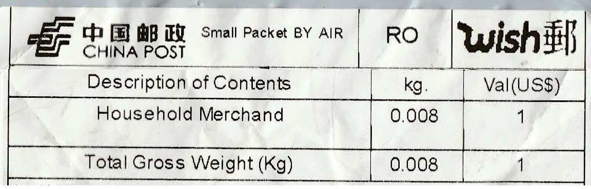 Trimterea la care mă refer nu este scrisoare, are grosime și este etichetată ca Small Packet BY AIR și descrisă ca Household Merchand, așa că este total legată de acest topic (vedeți vă rog prima postare) și nu de categoria la care vă referiți...