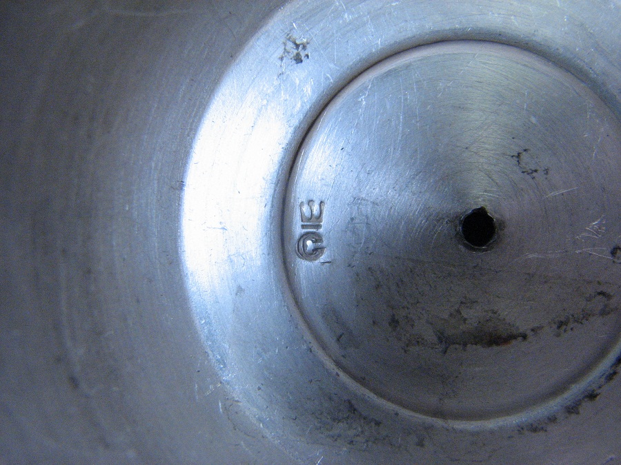Am gasit acest marcaj pe piciorul unui pahar vechi, care pare sa fie din Ag sau argintat.