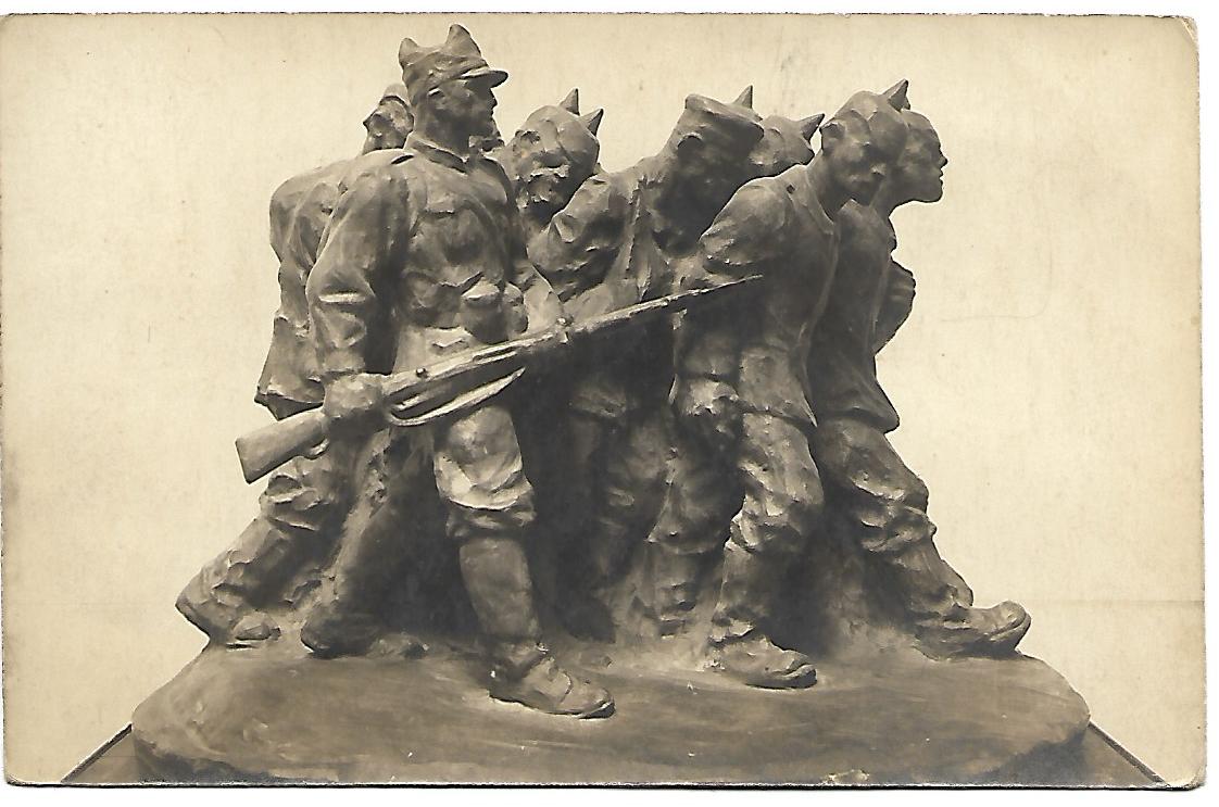 Pentru prima: Cornel Medrea – Prizonieri germani escortați de soldați români (1918) Muzeul Militar Național Regele Ferdinand I – Colecția Sculpturi „Convoaiele de militari germani capturați în urma ofensivei soldaților români din data de 10 noiembrie 1918, care au făcut ca trupele germane să se retragă, o parte din aceștia căzând prizonieri, au fost surprinse de sculptorul Cornel Medrea în lucrarea Prizonieri germani escortați de soldați români.”. După cum vedeți este o lucrare de mici dimensiuni, probabil și celelalte două să fie din aceeași categorie. Primele două sunt turnate (bronz?), ultima este în lut (ipsos patinat?), posibil să nu mai existe.
