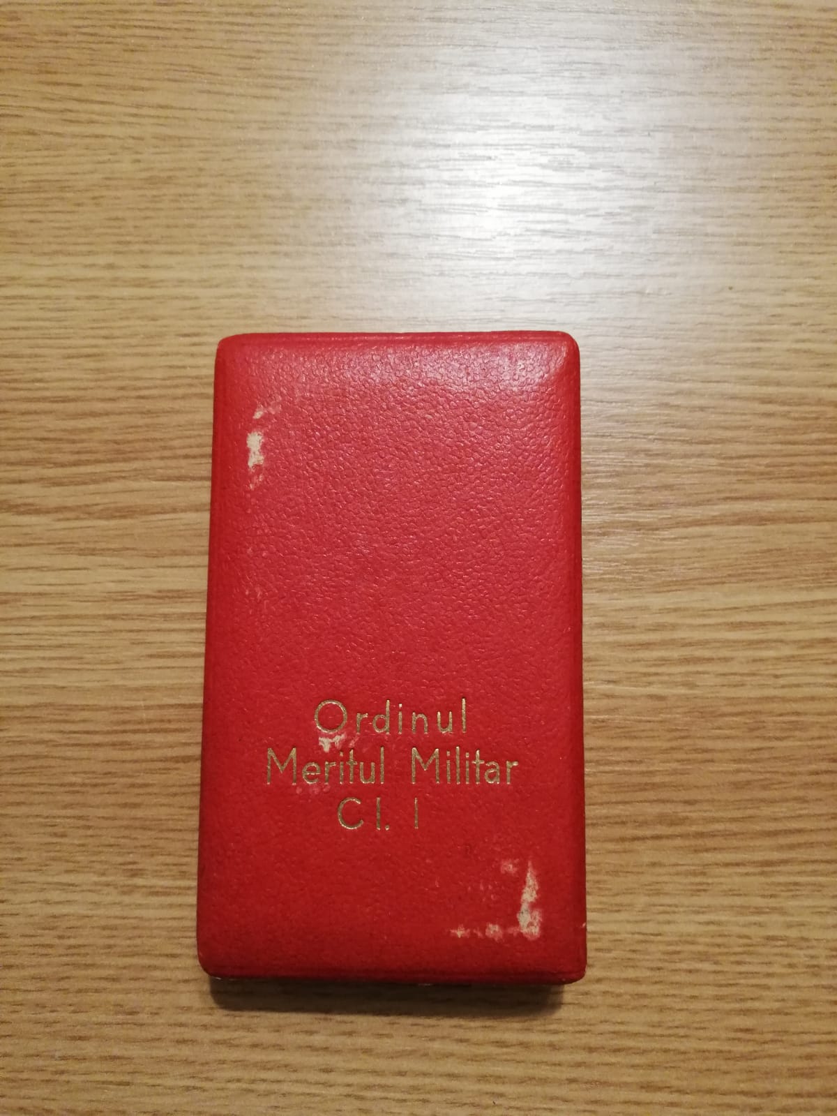 Ordinul Meritul Militar cls 1 model RPR a fost conferit unor anumite persoane din Ministerul Forțelor Armate și nu a ținut de vechime, ci de lupta ilegalistă. Este o piesă rară. Eu am găsit cu mult timp în urmă, dar un brevet nu am găsit. Atașez câteva imagini cu cutia ordinului și setul complet.
