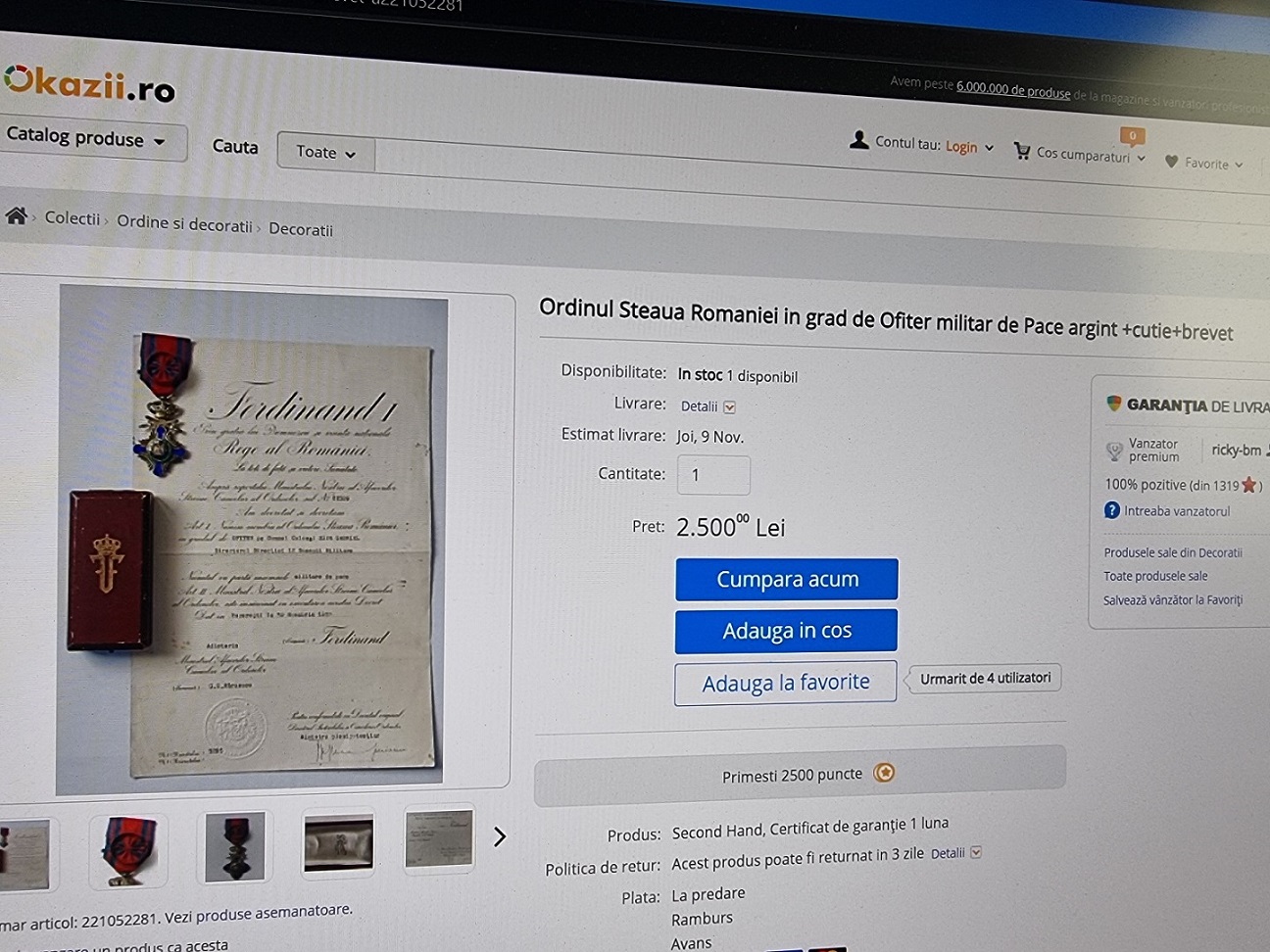 Vanzatorul Ricky BM ( eBay, Okazii ) ofera 2 chestii interesante pe Okazii.ro, la faleristica .