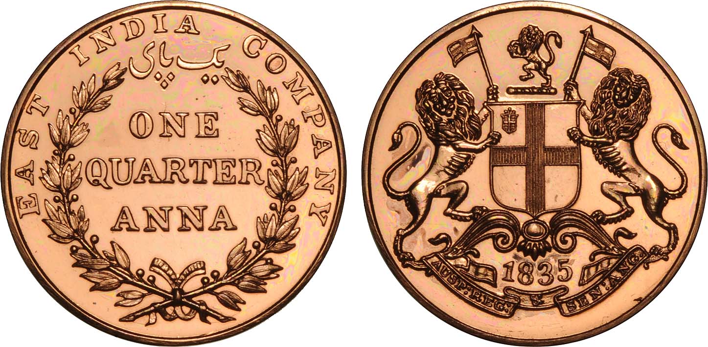 3. 1/2, 1/4 şi 1/12 ANNA, East India Company, începând cu 1835