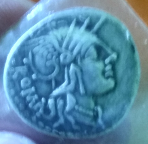 Am găsit pe un site acest denar republican dar niciunde nu găsesc acest model pe net.Este un fals?Gramajul apare de 3,4 gr. scris de vânzător.M-a indus in eroare și faptul că "Roma" este scris de obicei sub cai și nu lângă cap.Va rog frumos sa va spuneți părerea,să știu dacă sa îl cumpăr sau nu și cât ar fi un preț corect.Multumesc anticipat!