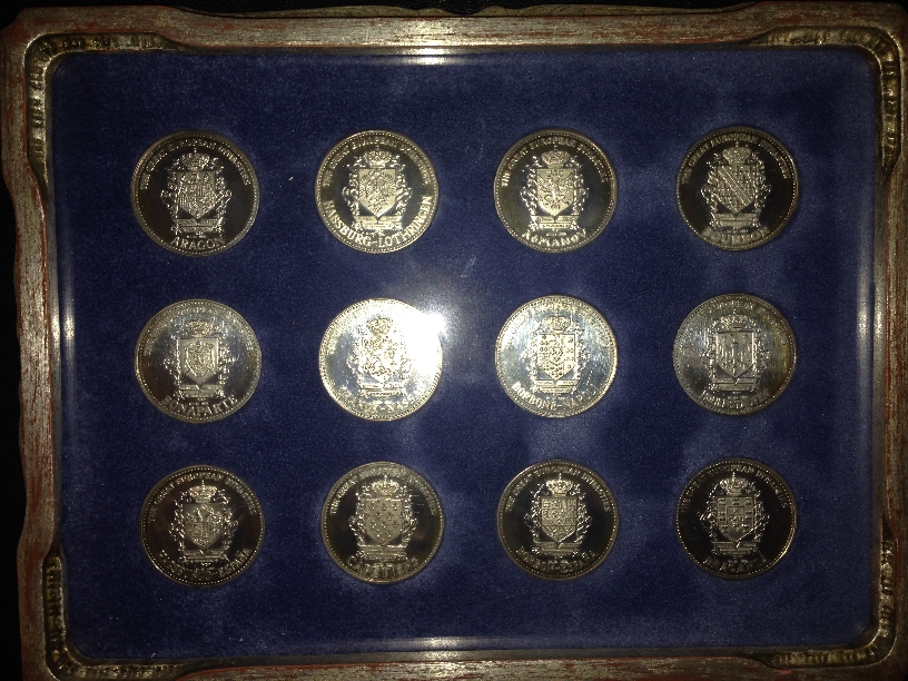 Va rog daca ma puteti ajuta sa identific monedele/colectia din pozele atasate. Sunt din argint(au stanta) si pe ele scrie "THE GREAT EUROPEAN DYNASTIES". Daca aveti informatii si in ceea ce priveste valoarea lor si unde as putea sa le valorific, v-as fi recunoscator.