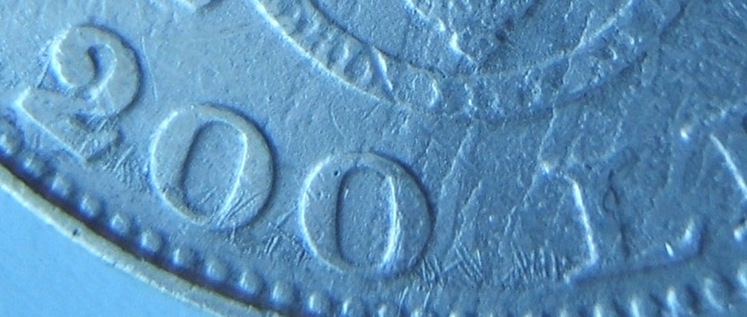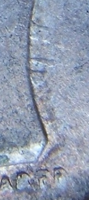 10 bani 1905.O suprafața cu doua straturi de material."N"-ul de la ROMANIA s-a tocit complet in partea de jos,in partea de sus ramânând lizibil...